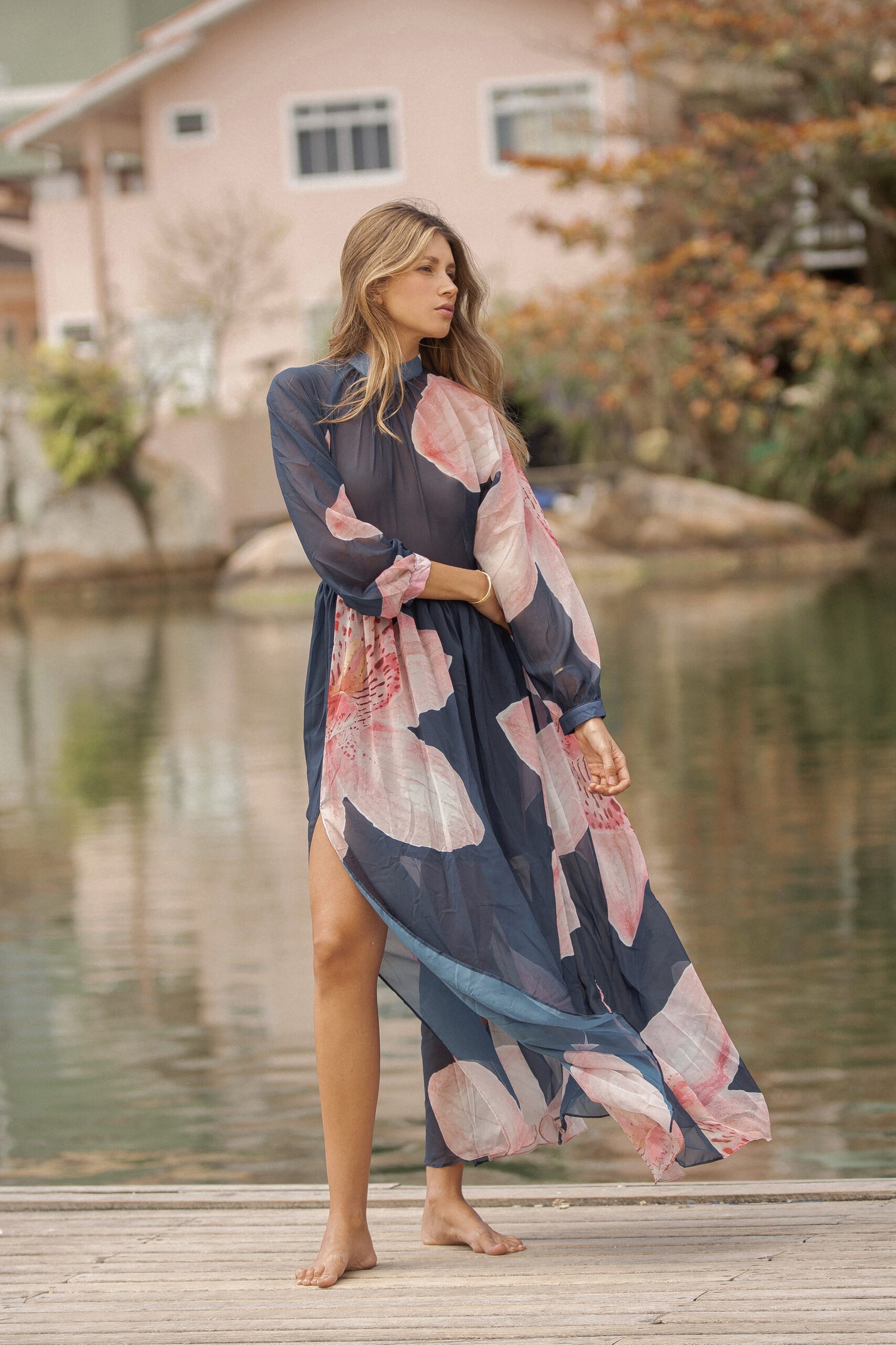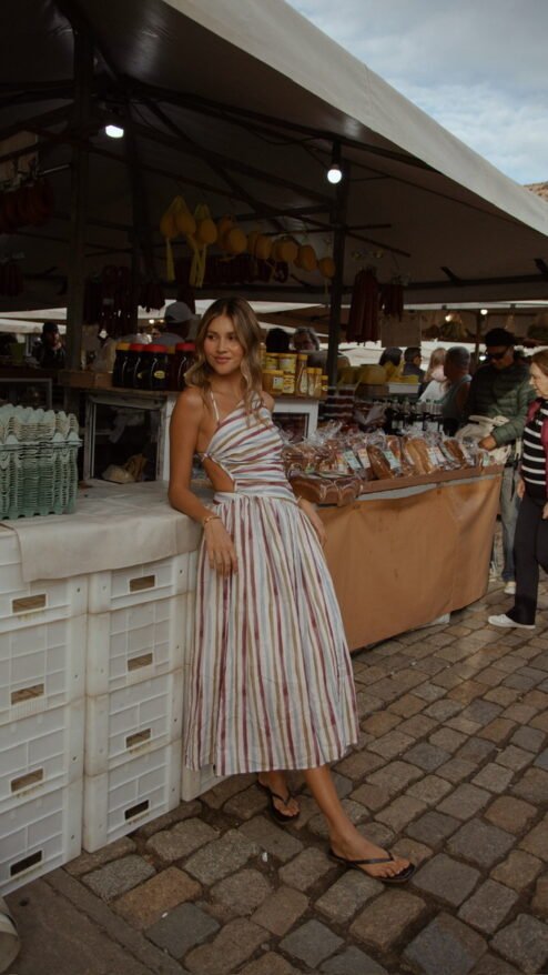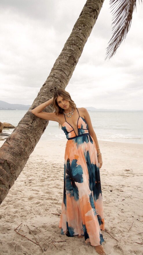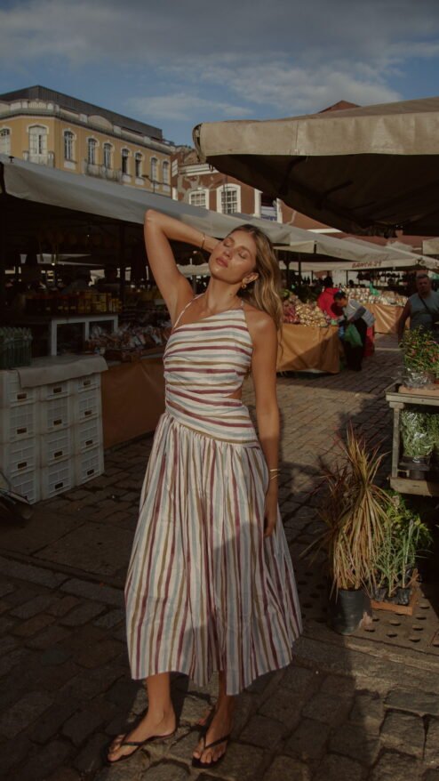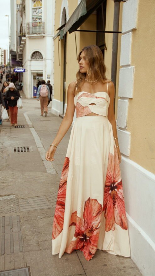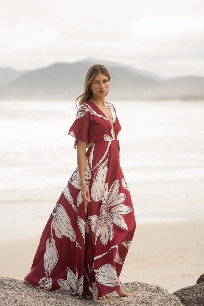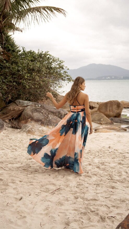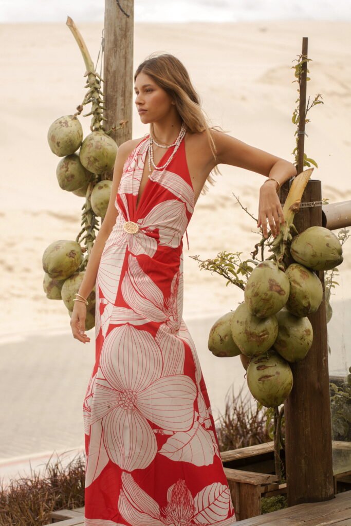 Florianópolis no es solo un lugar: es una vibra, un murmullo de olas que acarician la arena y un viento cálido que enreda el cabello. Esta colección captura esa energía etérea en vestidos que se viven: prendas que respiran con el cuerpo, que invitan a caminar descalza sobre la arena o entrar con la seguridad de atraer todas las miradas.