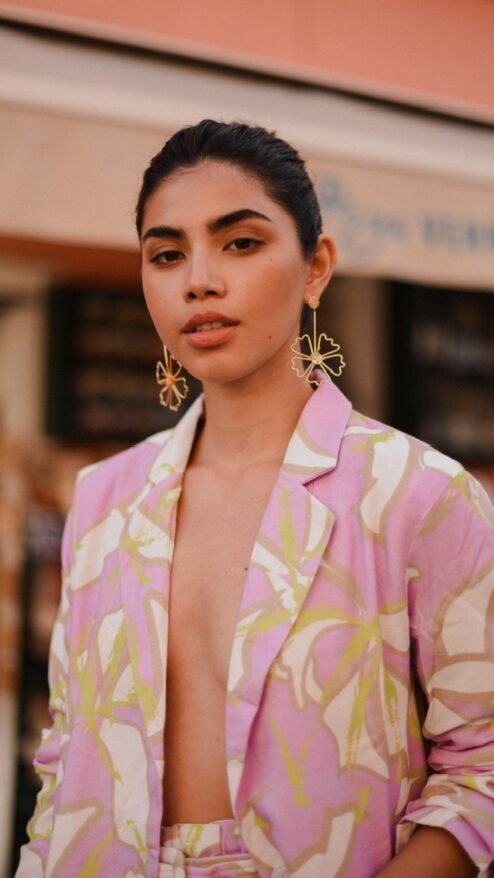 Divertido y femenino, así es el blazer Palermo, inspirándose en escenas de vacaciones tropicales con su estampado floral. Tiene un corte relajado y un botón frontal.