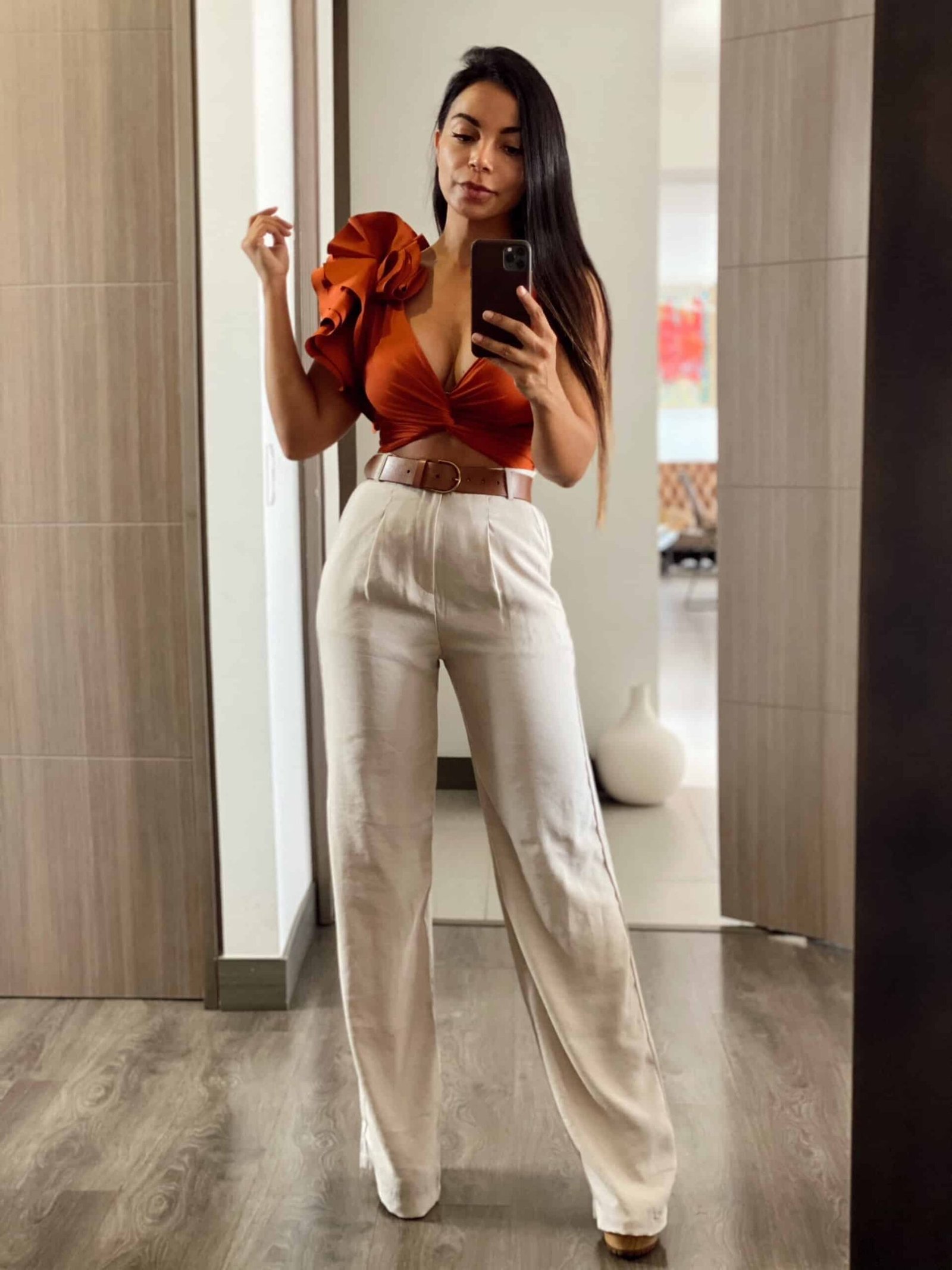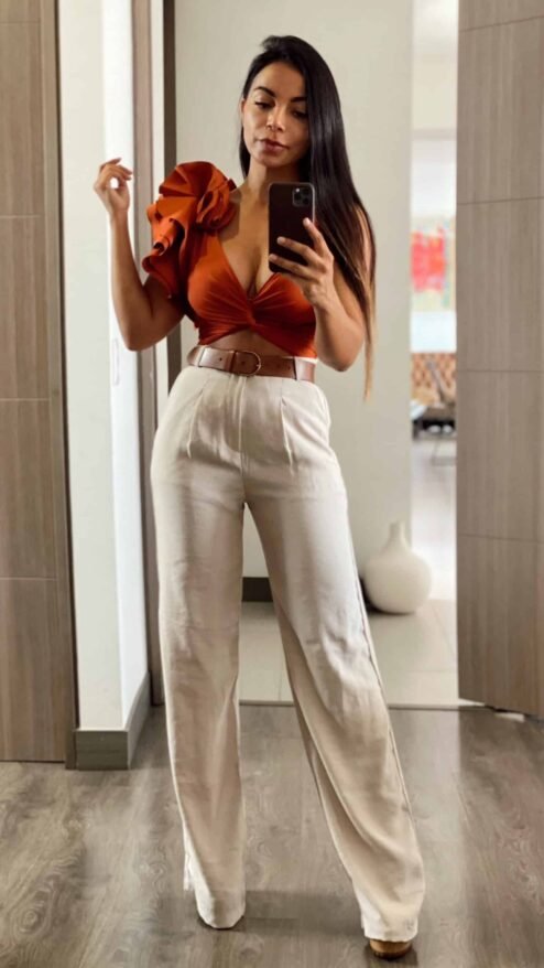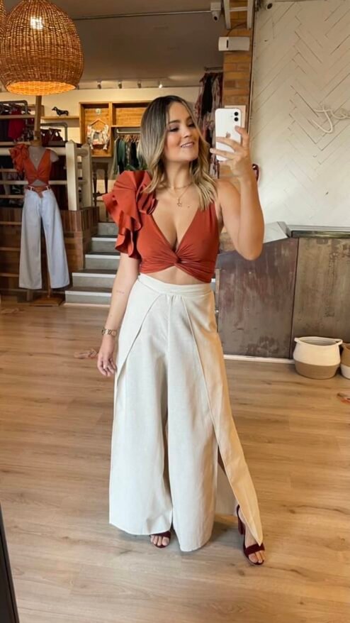 Body cruzado en el pecho con detalle de golas en un hombro (varios colores disponibles)