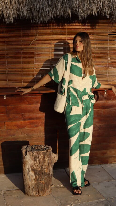La camisa del set Isleño de la cápsula Múcura es el equilibrio perfecto entre estilo relajado y sofisticación tropical. Confeccionada en una tela suave y fluida que presenta un diseño en relieve de hojas, esta pieza captura la esencia isleña de la colección. Los detalles en la textura aportan un toque visual interesante que se aprecia aún más en el juego de luces y sombras, añadiendo profundidad a cualquier look.