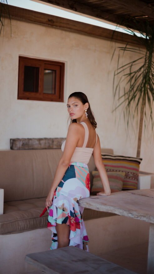 ¡Dale el sabor latino a tus outfits de verano con la falda Izamal! Esta belleza tiene una silueta asimétrica con ruffles escalonados, ajustada en la cadera para resaltar tus curvas y terminada con el estampado floral más divertido y espectacular, es una pieza única y favorecedora que se verá impresionante con un top básico, no necesitas nada más.