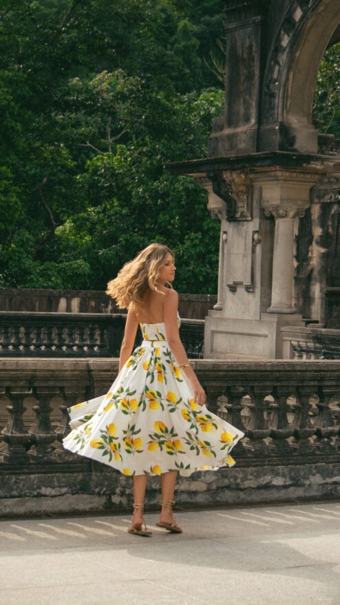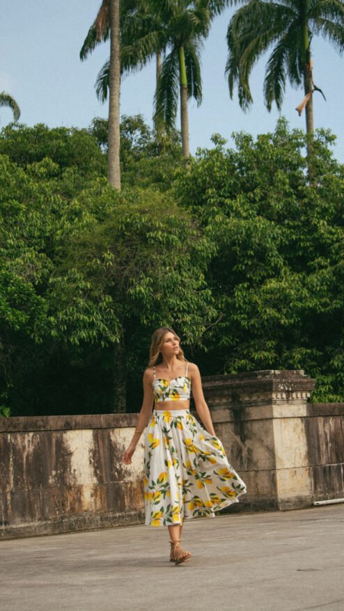 Déjate envolver por la frescura del verano con la Falda Amalfi, una pieza que captura la esencia vibrante de los paisajes mediterráneos. Con un estampado de limones que evoca días soleados y una silueta midi de corte fluido, esta falda es sinónimo de frescura y sofisticación. Diseñada para ofrecer comodidad y estilo, la Falda Amalfi es perfecta para las mujeres que buscan piezas versátiles y llenas de carácter.