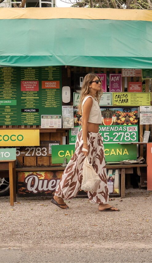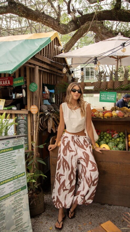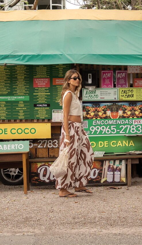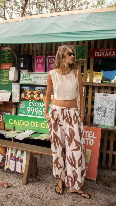 Con el alma ligera y el sol acariciando la piel, el Pantalón Cajú nace de esos días que fluyen sin prisa, donde el sonido del mar se mezcla con risas y frutas frescas. Es una pieza que encarna el encanto tropical de Florianópolis: natural, libre y lleno de vida. Diseñado para quienes encuentran belleza en lo simple y alegría en cada movimiento, este pantalón celebra la esencia cálida y despreocupada de la mujer latina.