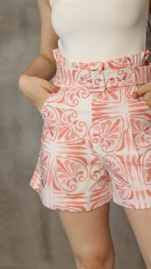 Eleva tu estilo para los días cálidos con nuestro short de pretina abanico o paper-bag en estampado de mosaicos. Este short tipo sastre de talle alto incluye un cinturón en la misma tela, detalle de pliegues en la pretina, pinzas delicadas en el frente, silueta amplia con doblez y bolsillos laterales. Es una prenda tan chic, que no necesitarás mucho más para crear el outfit perfecto; sólo agrega nuestra camisa de lino y sandalias y tienes el look casual ideal!
