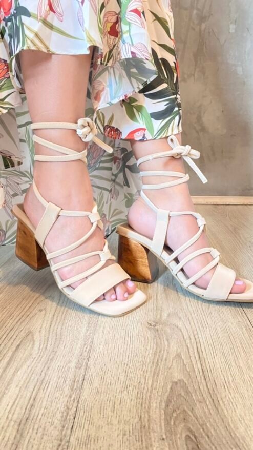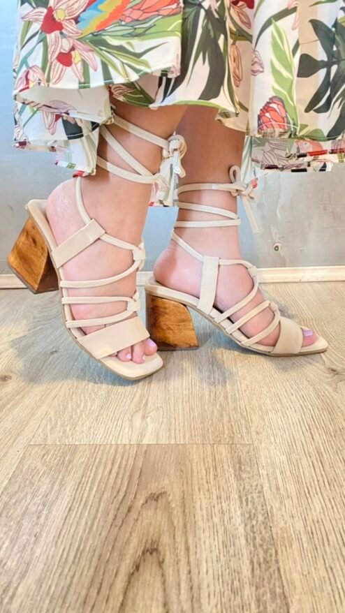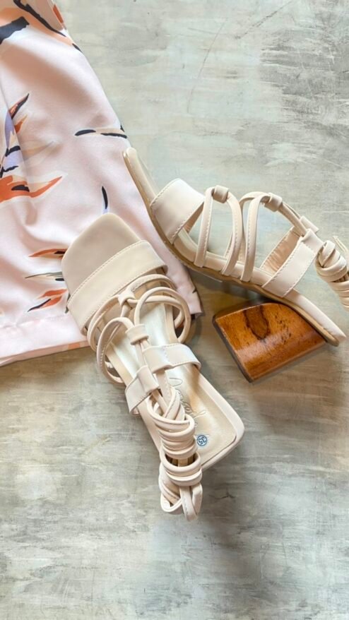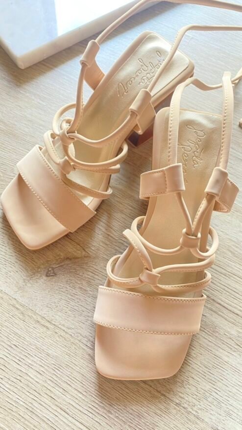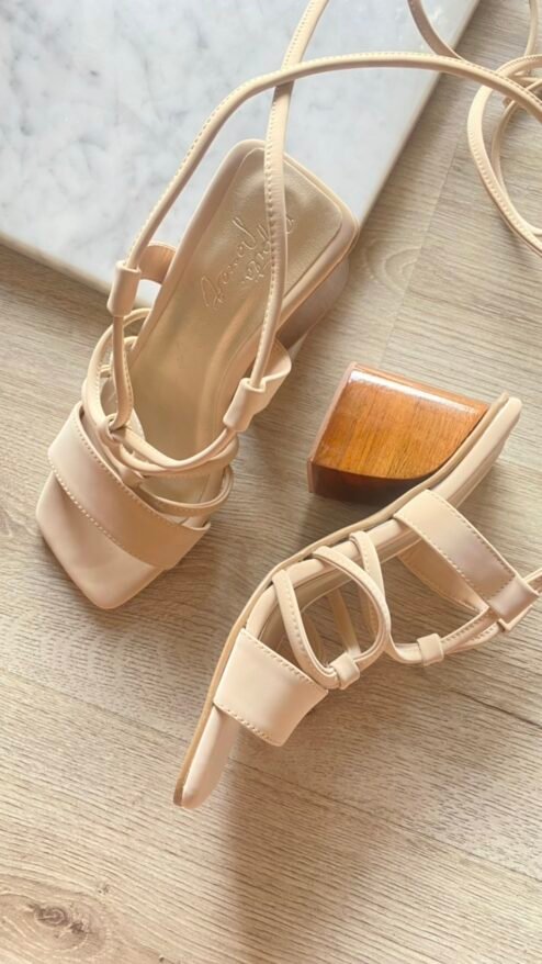 Nuestros tacones de altura media y tacón en madera serán tu complemento perfecto para tus outfits casuales. En un color nude súper fácil de combinar y muy versátil, con tiras de amarrar al tobillo que te harán ver muy estilizada y tacón grueso que los hacen muy cómodos, serán tus favoritos para todos los días!