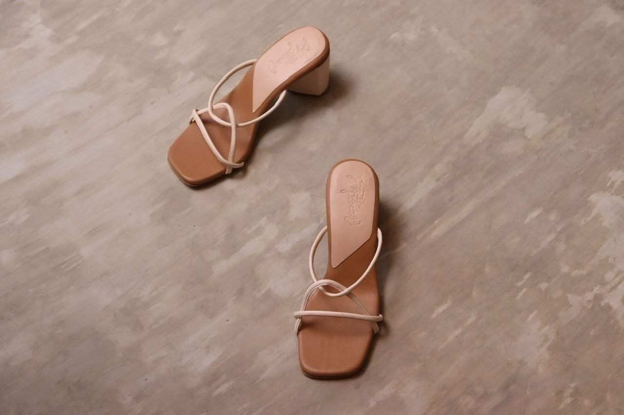 Tacones de altura media en color nude. Tiras delgadas frontales que proporcionan estabilidad y comodidad pues mantienen el pie en su lugar.