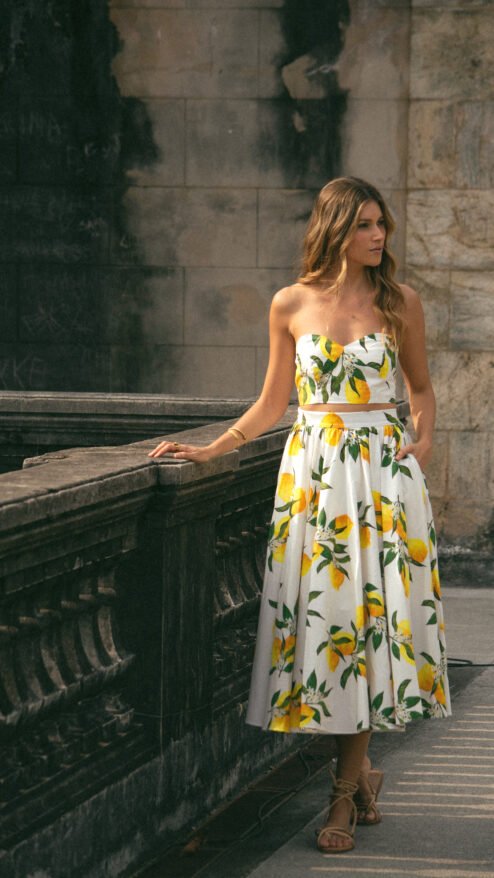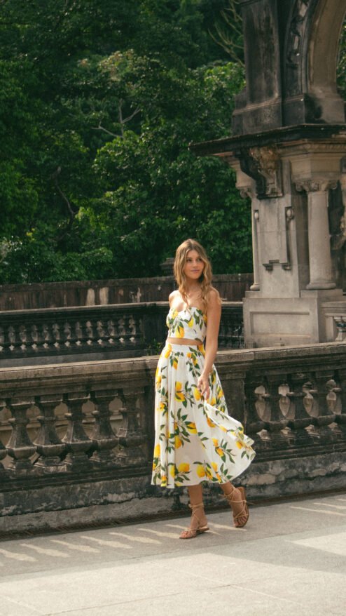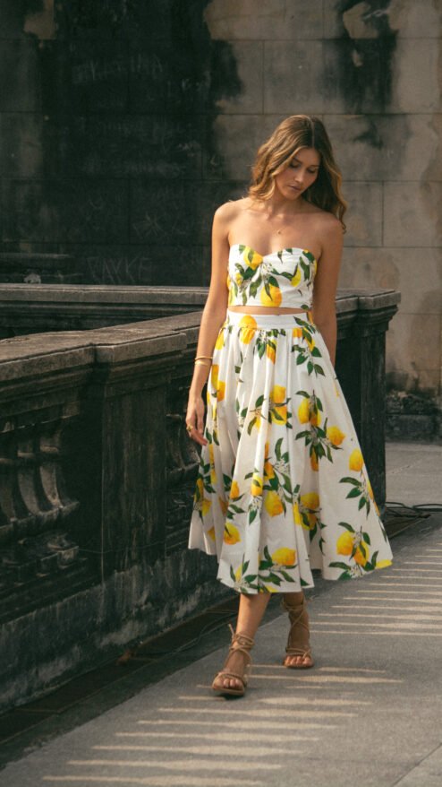 – Tarde en la playa: Combínalo con la falda Amalfi a juego y unas sandalias planas para un look fresco y elegante.