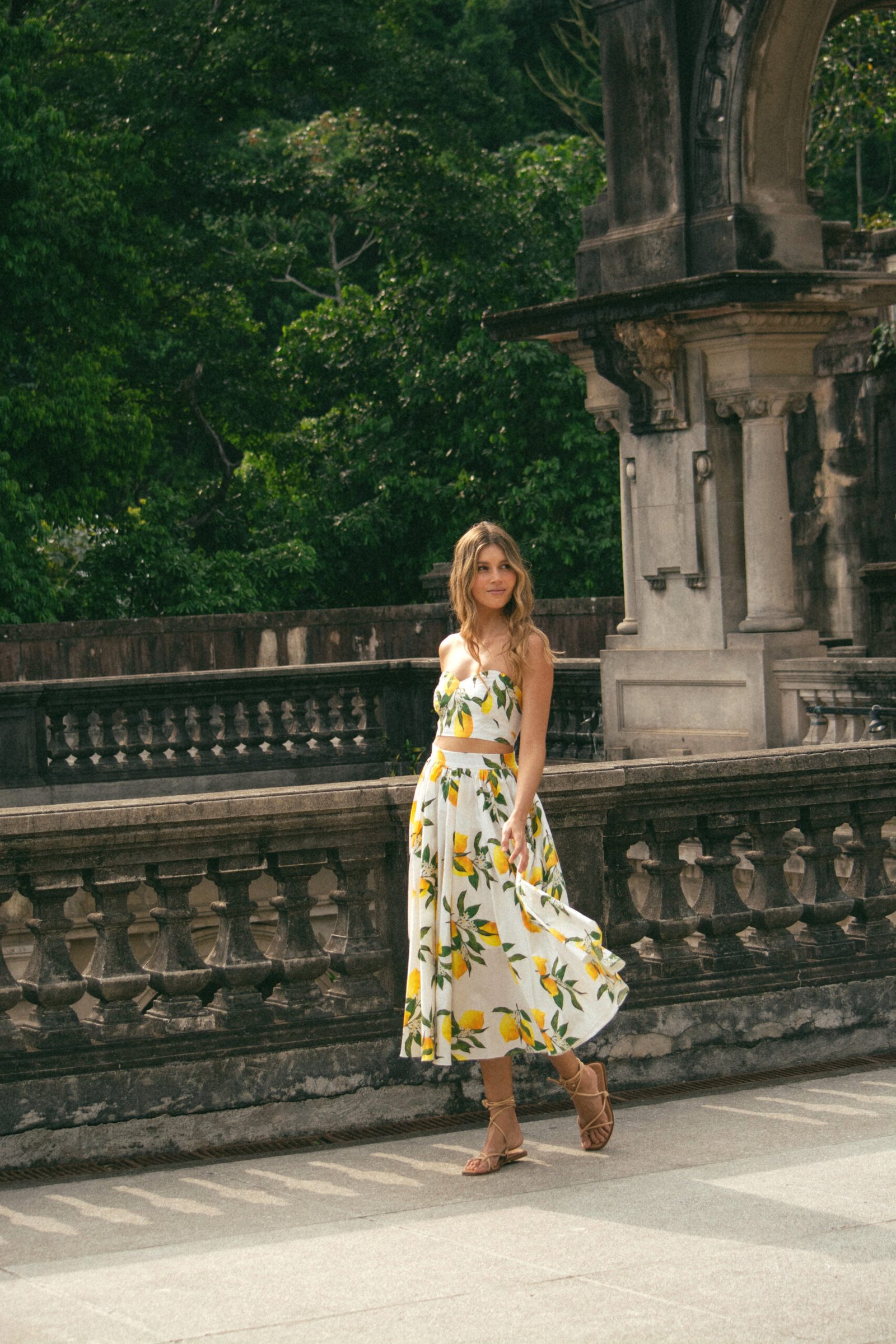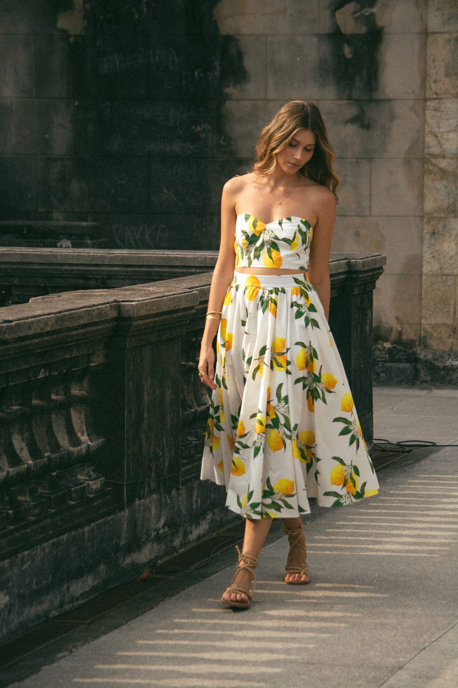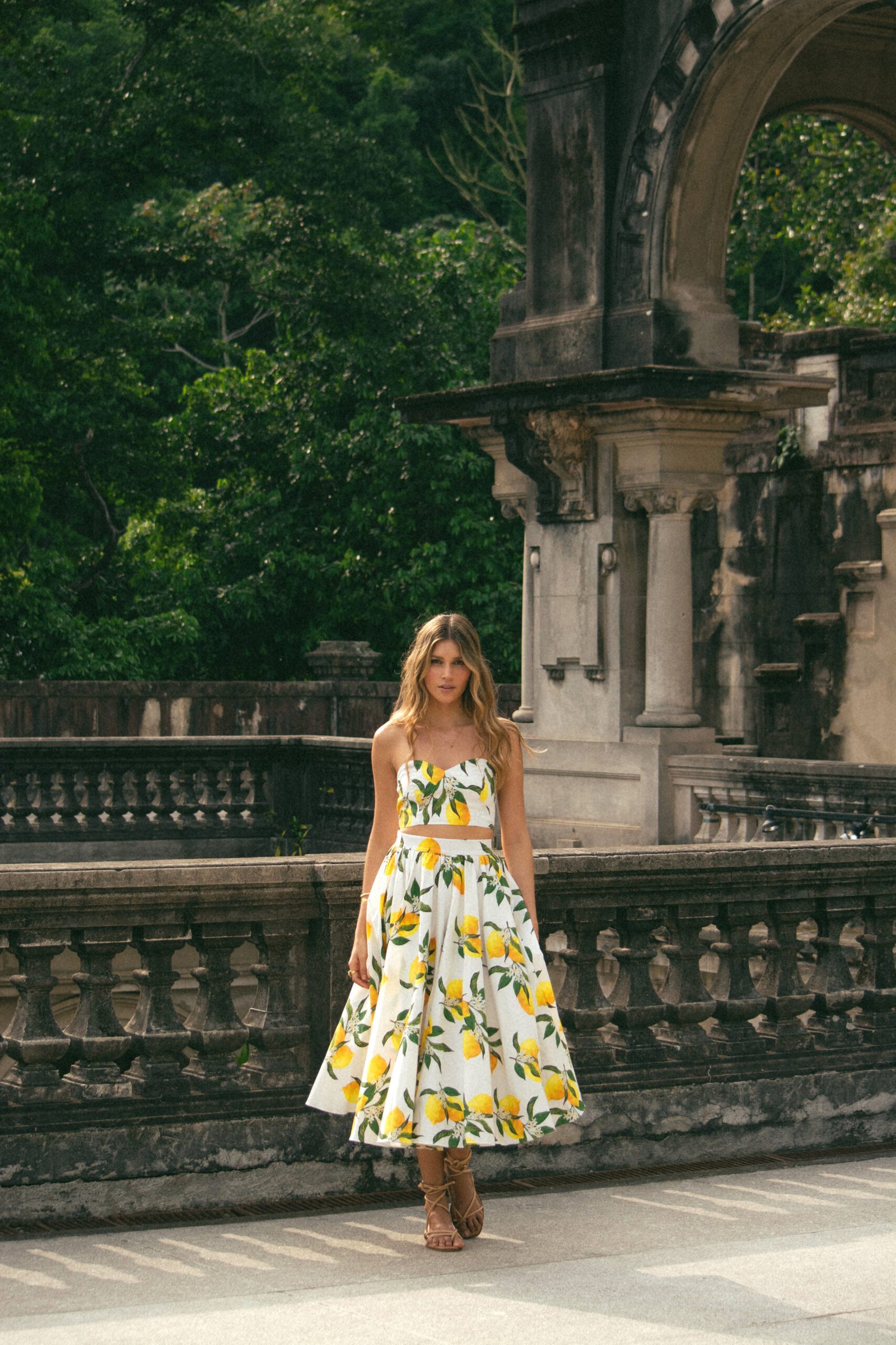 El Top Amalfi te transporta a los paisajes mediterráneos con su vibrante estampado de limones y diseño fresco. Perfecto para los días cálidos de verano, este top combina un escote palabra de honor con detalles ajustados que resaltan la figura de manera favorecedora. Diseñado para ofrecer una mezcla de estilo y comodidad, el Top Amalfi es una pieza versátil que refleja el espíritu relajado y colorido de la colección Tierra Caliente.