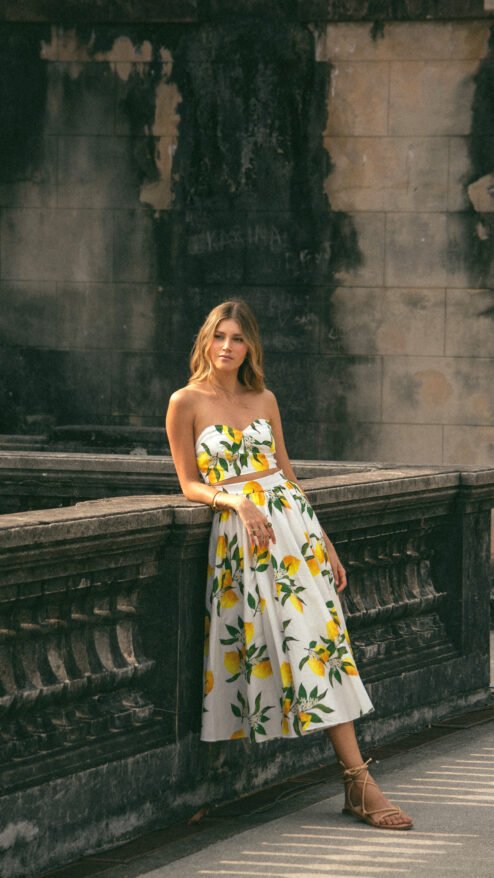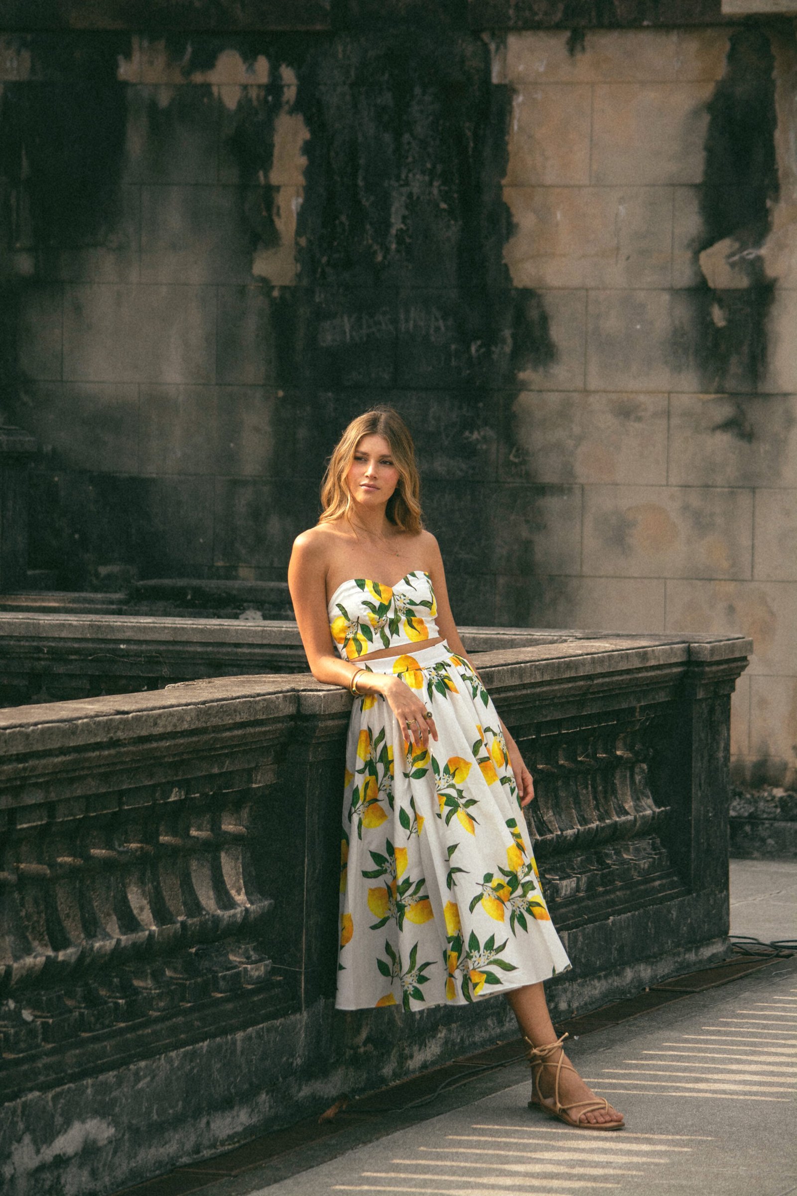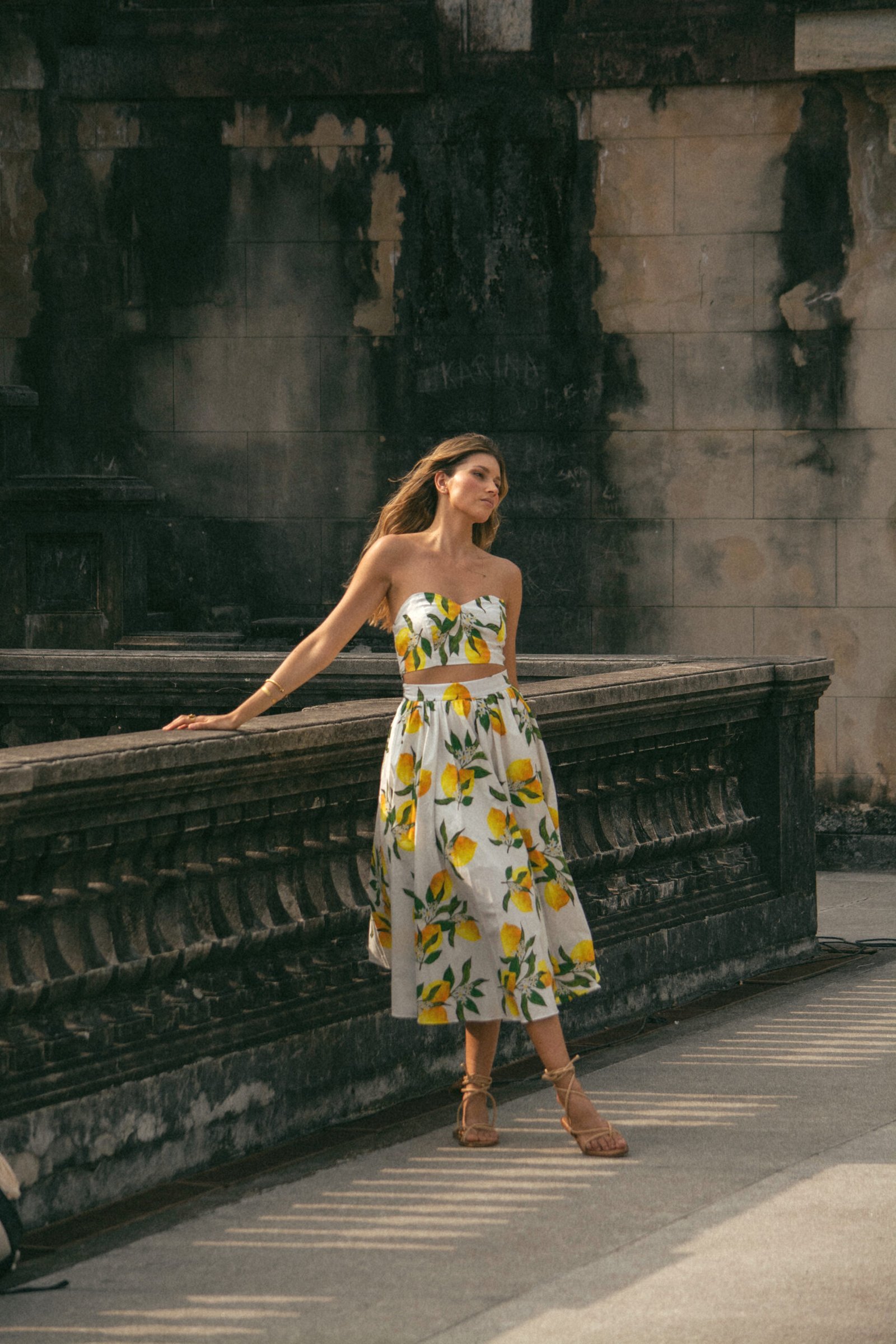 El Top Amalfi te transporta a los paisajes mediterráneos con su vibrante estampado de limones y diseño fresco. Perfecto para los días cálidos de verano, este top combina un escote palabra de honor con detalles ajustados que resaltan la figura de manera favorecedora. Diseñado para ofrecer una mezcla de estilo y comodidad, el Top Amalfi es una pieza versátil que refleja el espíritu relajado y colorido de la colección Tierra Caliente.
