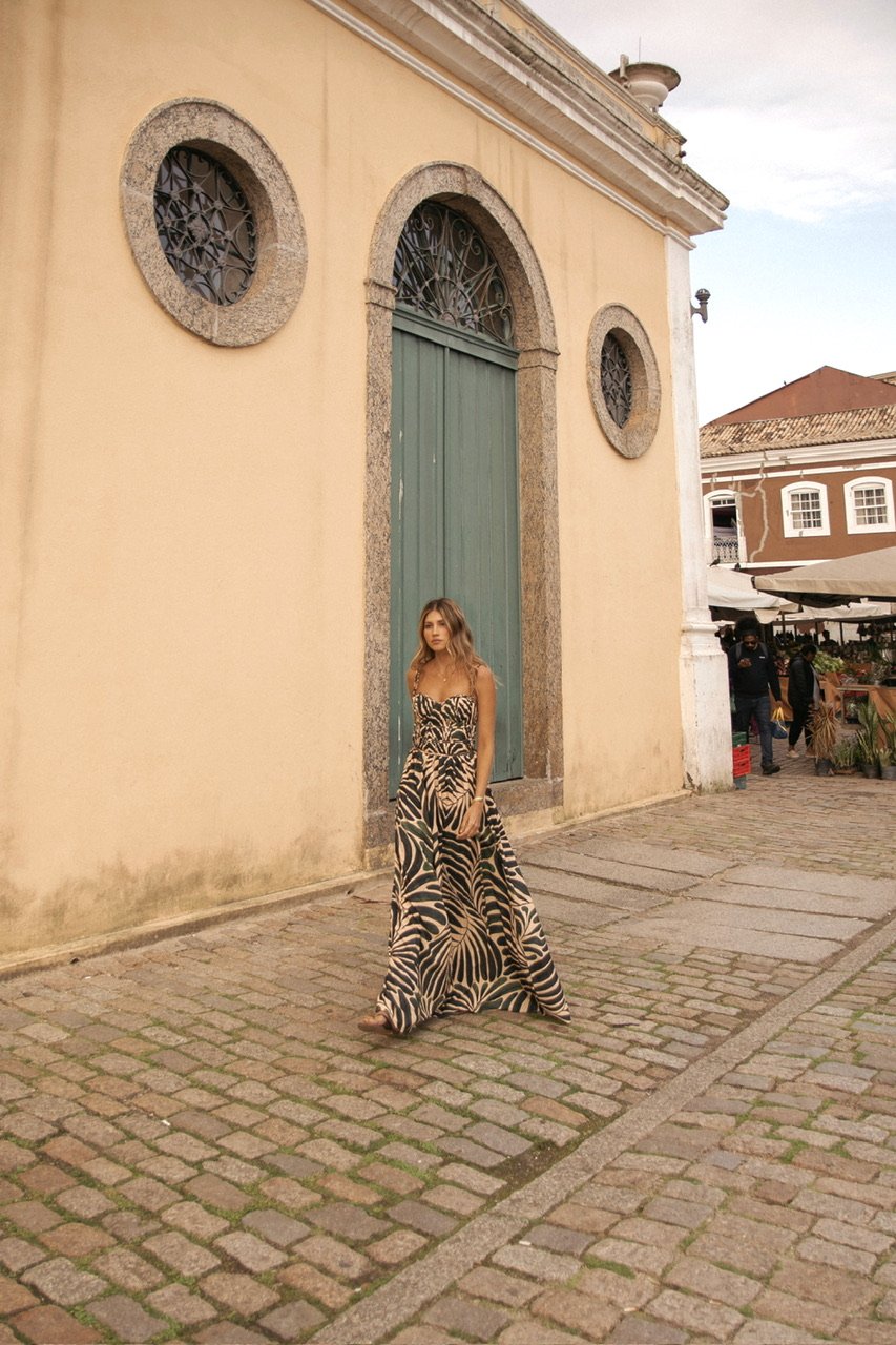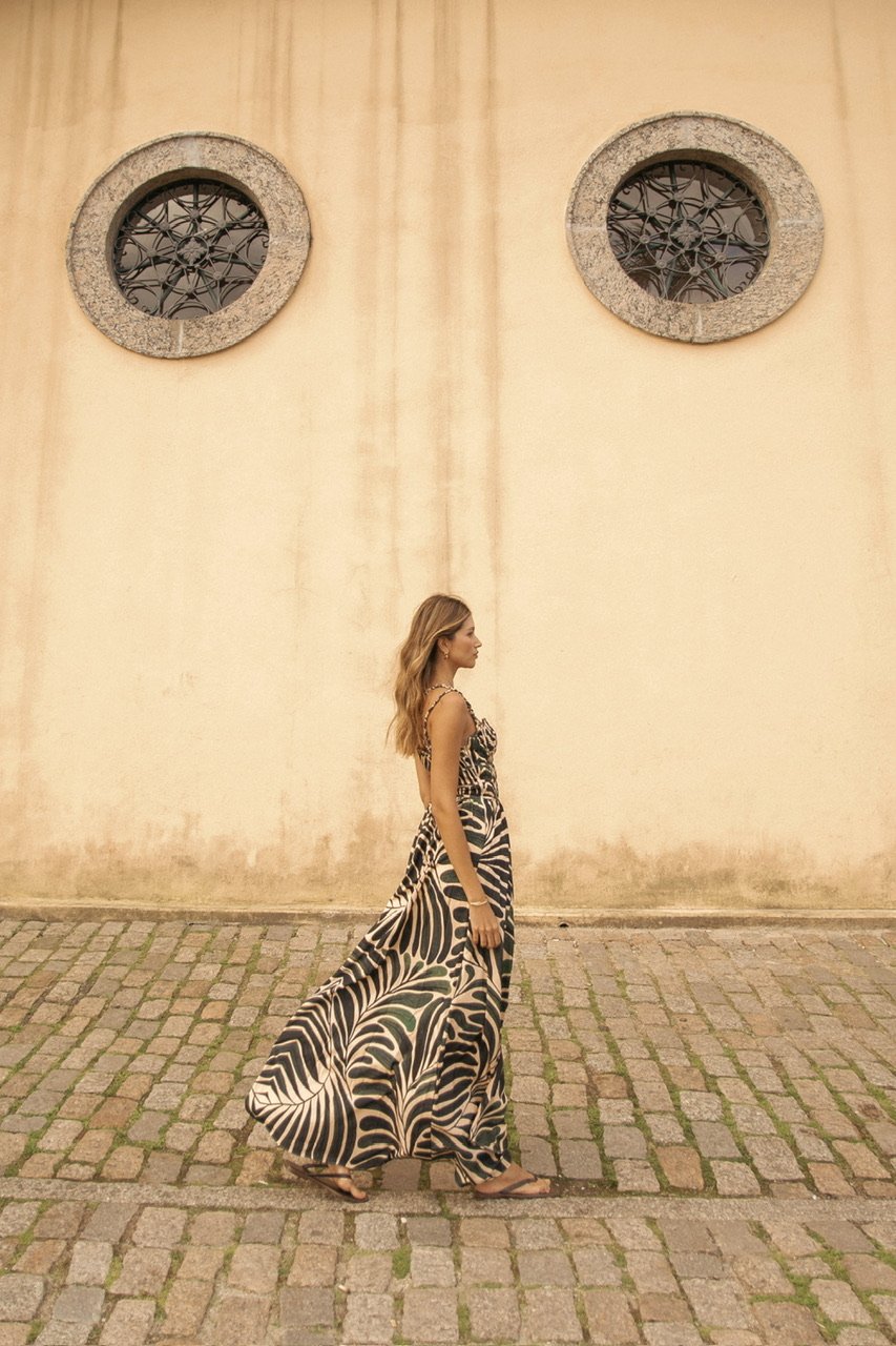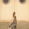 Entre calles antiguas, brisa marina y música de fondo, el Vestido Alondra se mueve como un suspiro. Su caída ligera acompaña cada paso con la misma gracia con la que una alondra surca el cielo: libre, elegante y serena. Es una pieza que celebra el encanto natural de la mujer latina, esa mezcla de dulzura y determinación que florece entre lo cotidiano y lo extraordinario.