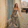 El Vestido Alondra destaca por su silueta fluida y su ajuste delicado al cuerpo, gracias al bustier estructurado que realza la figura y a los tirantes finos con detalle trenzado que aportan feminidad y comodidad. Su falda amplia se mueve con ligereza, creando una sensación de libertad en cada paso.