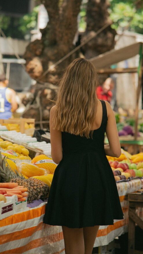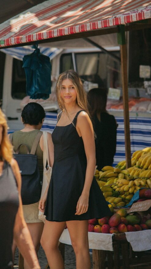 El vestido Azabache combina un diseño clásico con una esencia fresca y contemporánea. Ideal para paseos por mercados locales, brunch con amigas o una cita casual, este vestido captura la simplicidad chic que eleva cualquier día.
