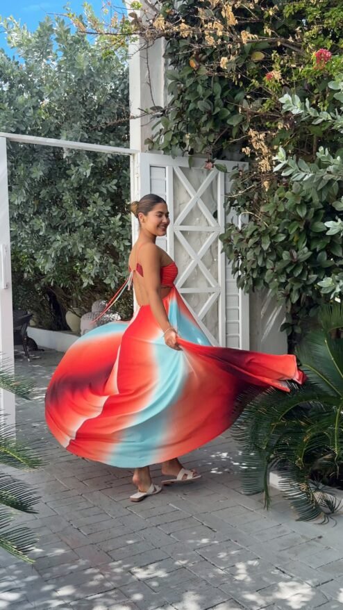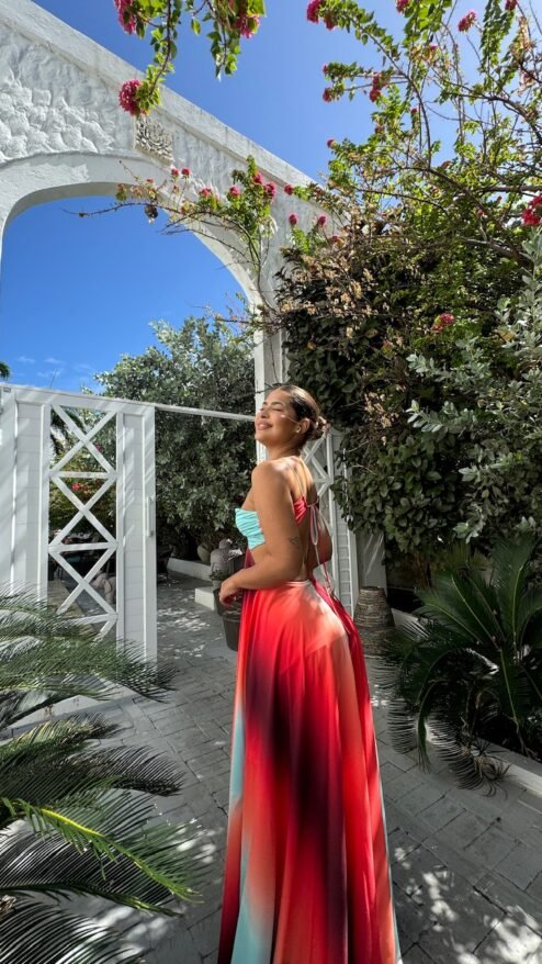 El vestido Boreal te hará sentir como un lienzo en movimiento, llevando contigo la energía vibrante del verano. Su mezcla de colores y diseño sofisticado hacen que cada ocasión sea especial y que cada mirada se detenga en ti.