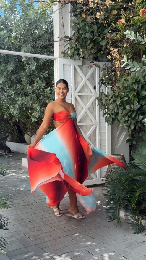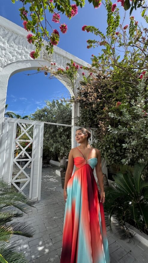 El vestido Boreal captura la magia de los colores en movimiento, como un amanecer tropical reflejado en el agua. Diseñado para robar miradas y hacerte sentir única, es perfecto para eventos al aire libre, cenas en la playa o incluso una escapada romántica. Este diseño fluido y elegante es una declaración de feminidad y libertad, ideal para quienes buscan destacarse con estilo y comodidad.