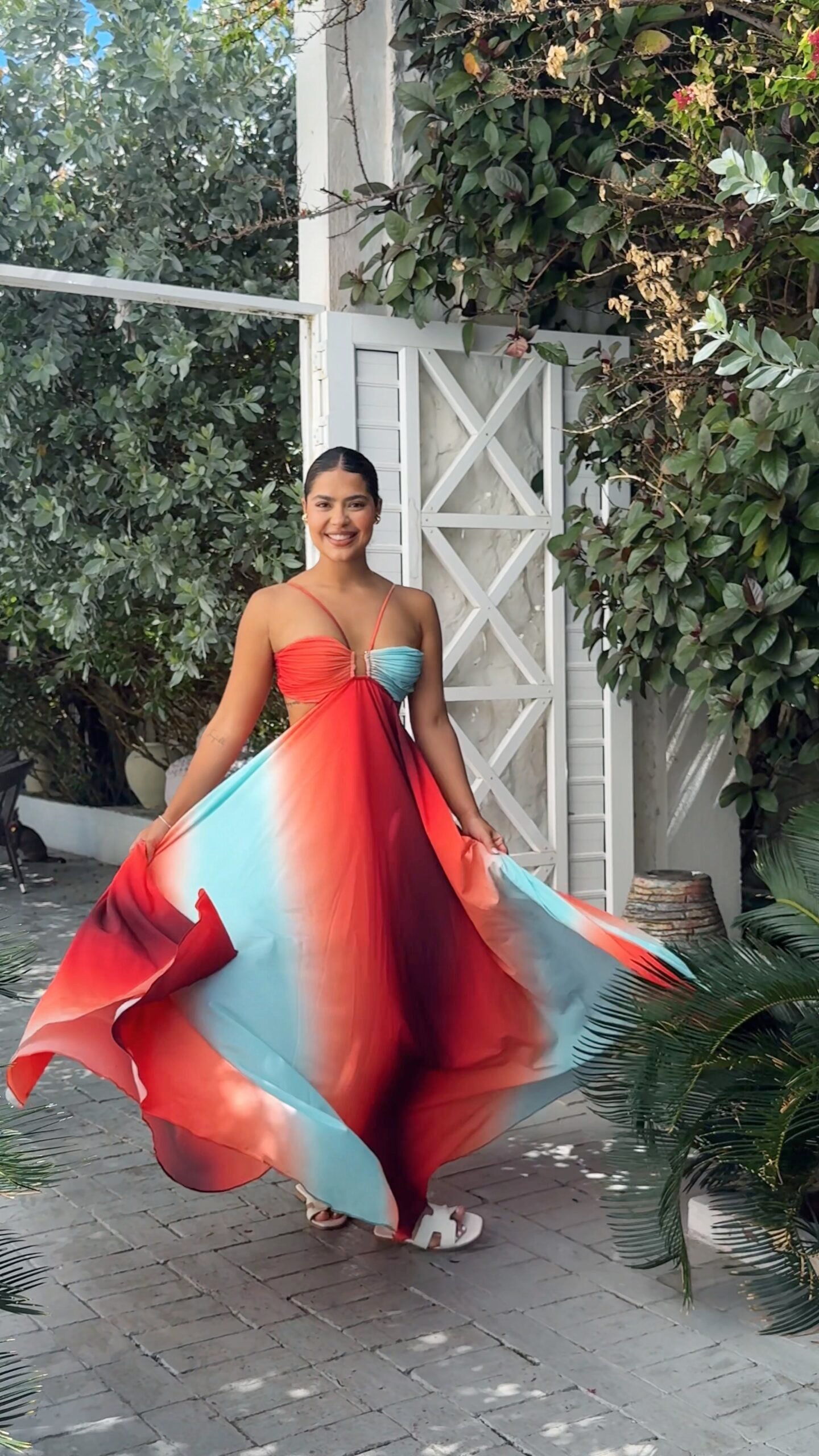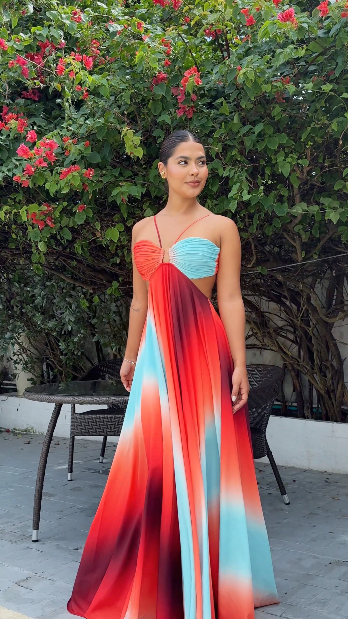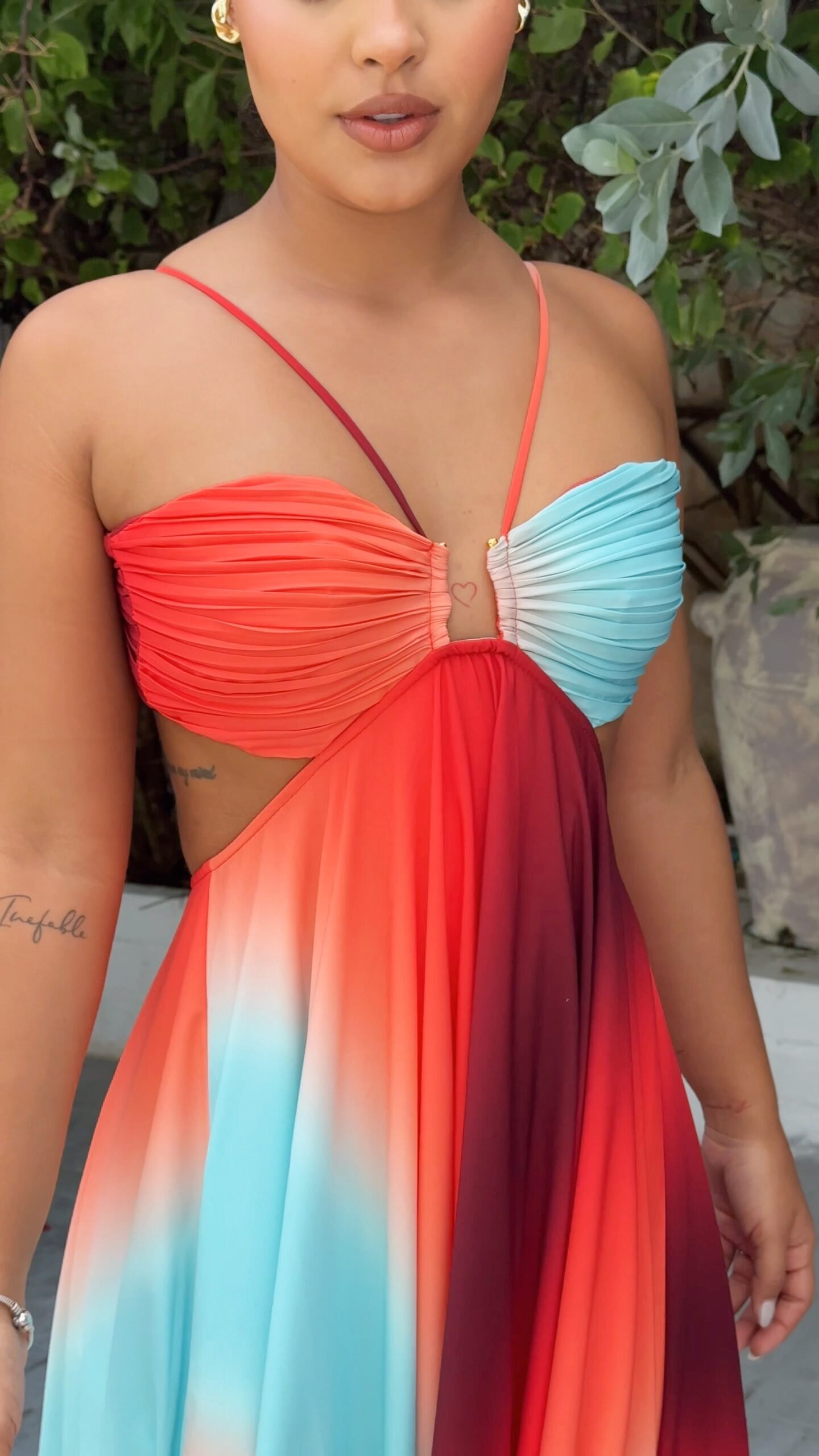 • Diseño: Top trillado con efecto degradado de colores vibrantes. Detalle cut-out frontal y espalda ajustable con tirantes delgados.