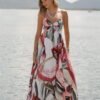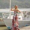 Llévalo con sandalias planas en cuero natural, ondas suaves en el cabello y maquillaje fresco con mejillas durazno. Añade accesorios en perlas o conchas para potenciar la vibra marítima.