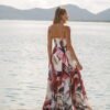 Su silueta amplia y vaporosa cae con un movimiento precioso que acompaña cada paso. El escote con una pieza central que reúne delicadamente el tejido y tirantes delgados enmarca el torso de forma favorecedora, creando una mezcla sutil entre sensualidad y dulzura.
