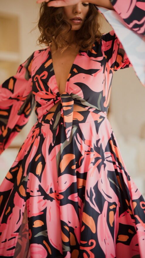 Pop of color, burst OF JOY! Conoce nuestro vestido Dolores, un vestido de fiesta de verano con un estampado floral de infarto, una silueta amplia y bohemia y un aire 100% femenino, desde las románticas mangas acampanadas, la gran amplitud de su falda hasta el lazo en el pecho, es un 10/10! Una prenda tan increíble que querrás que te vean, así que llévalo a tu próximo evento o viaje, es la pieza perfecta para que te acompañe en tus momentos más especiales.