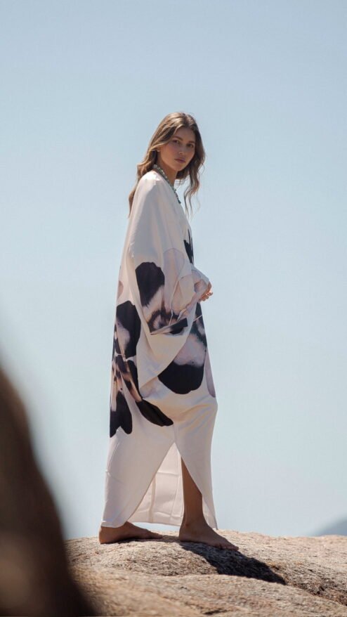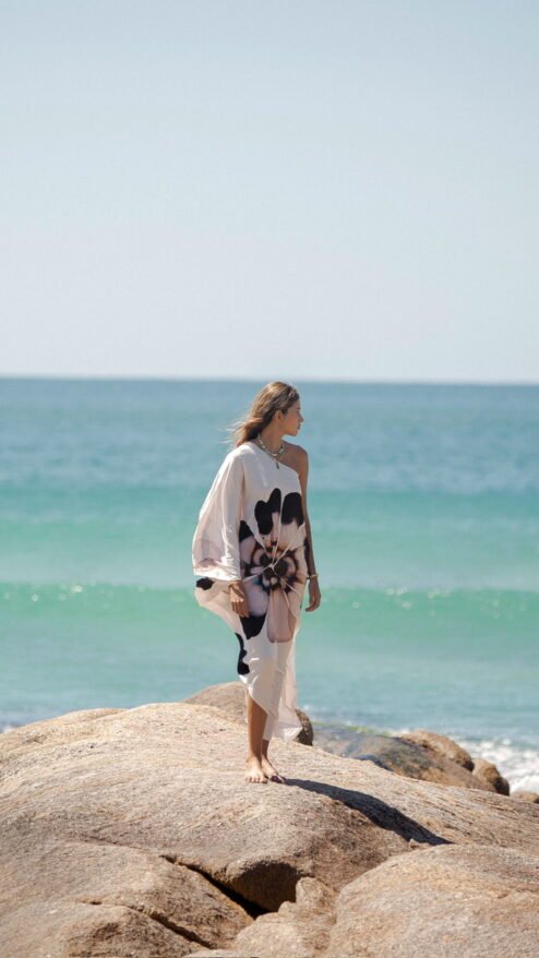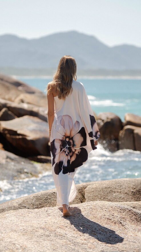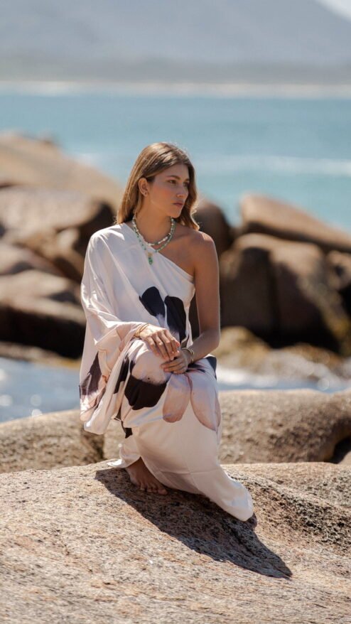 Porque te hace sentir parte del paisaje: libre, ligera, poderosa y femenina. Es una pieza que se mueve contigo, que te envuelve con su caída impecable y que transforma cualquier momento en uno especial. Floripa es la esencia misma de la colección: arte, comodidad y sofisticación tropical en una sola prenda.