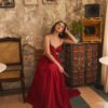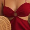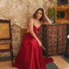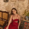 Su silueta fluida y de corte largo estiliza la figura mientras ofrece movimiento y frescura con cada paso. El escote corazón estructurado con tirantes delgados realza el busto de manera favorecedora, mientras que el cut-out central con detalle de argolla y el lazo en la espalda añaden un toque atrevido y sofisticado.