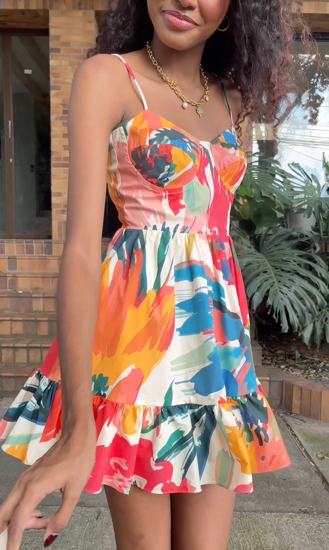 El vestido Macarena captura la energía del verano con su estampado vibrante y lleno de vida. Perfecto para días soleados, tardes casuales o salidas con amigos, este diseño combina comodidad y estilo en una sola pieza.