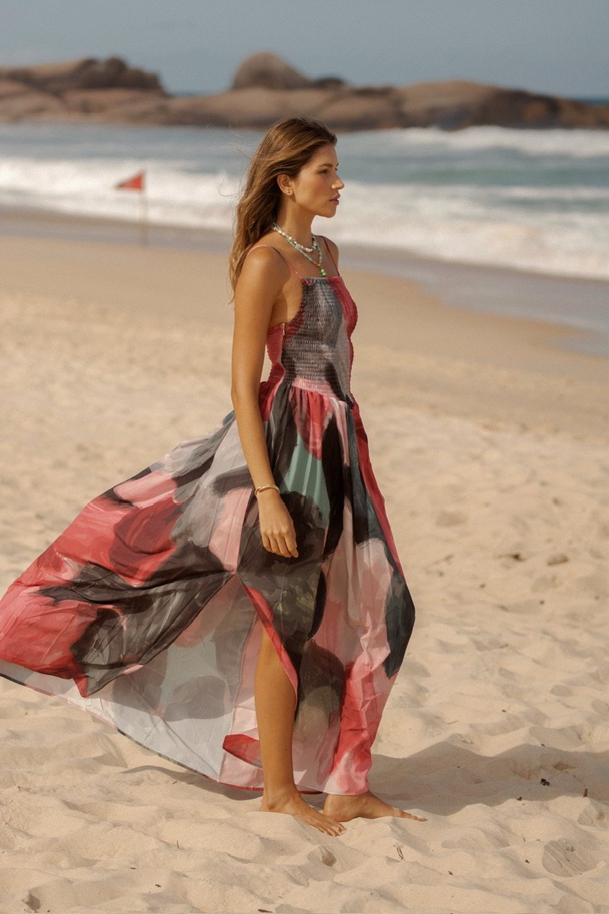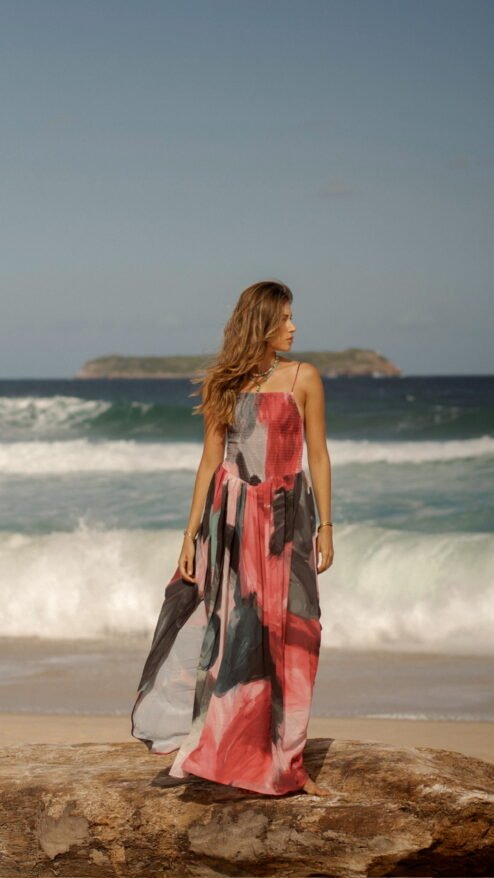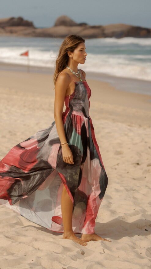Hay días en los que el mundo parece pintado con pinceladas suaves: la brisa salada, el sol que se asoma entre nubes ligeras y ese instante en el que todo se siente posible. Neblina nace de esa sensación: la calma luminosa del mar brasileño y la libertad de una mujer que camina sin prisa, dejando que su vestido baile antes que ella. Es una pieza que invita a moverse con ligereza, a sentirse dueña del momento y a vivir el verano desde la belleza simple y radiante de lo auténtico.
