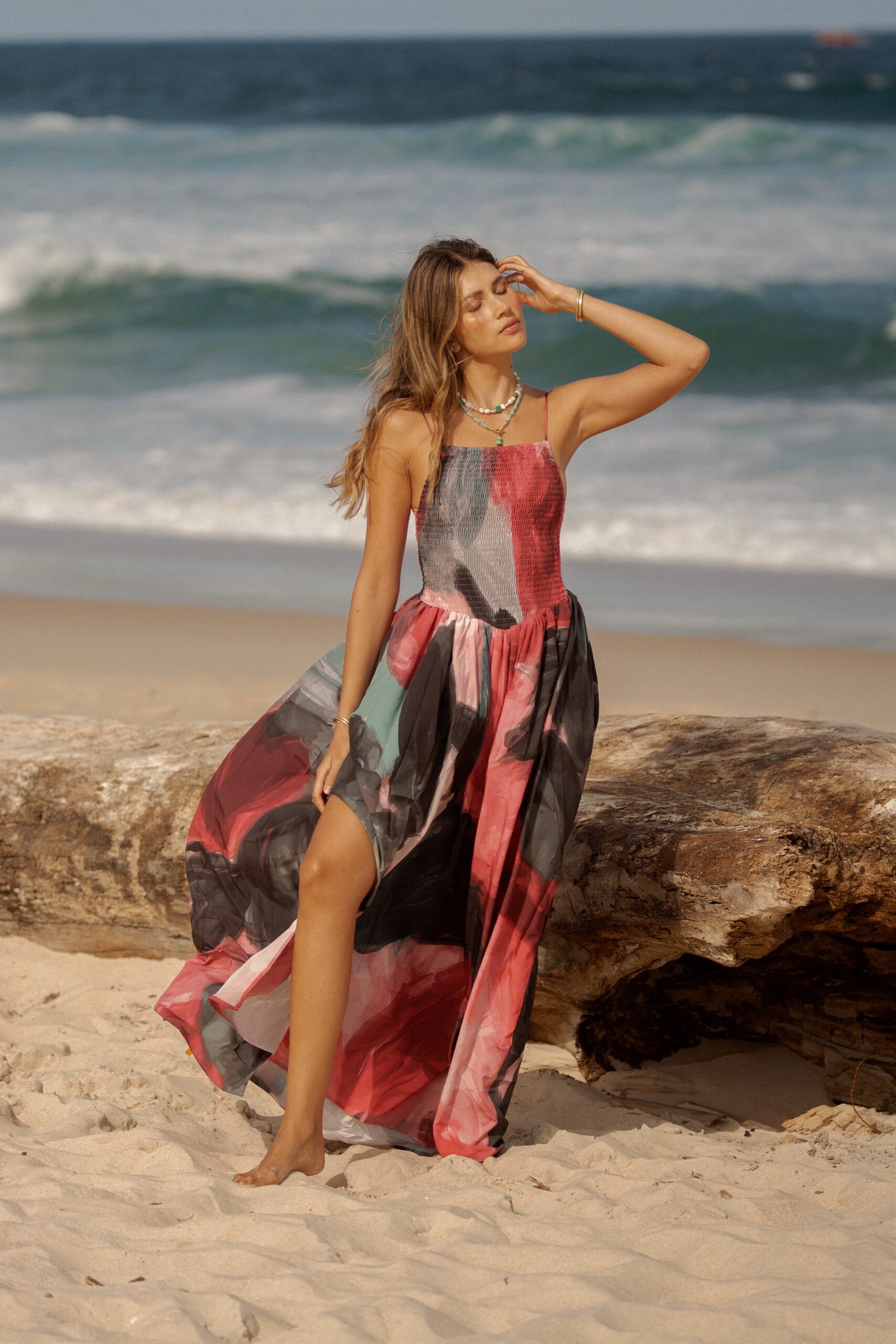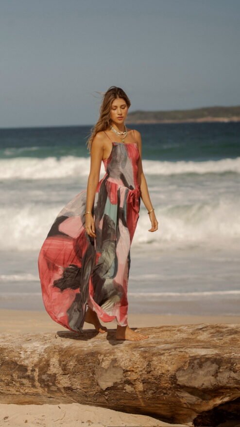 Los tirantes delgados aportan frescura, mientras que la falda de caída etérea y abertura lateral ofrece movimiento y libertad absoluta. Es un vestido ligero, fresco y cómodo, hecho para días largos, para escapadas espontáneas y para sentirse naturalmente hermosa sin esfuerzo.