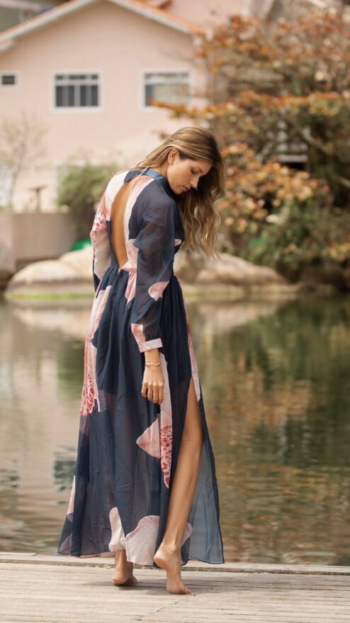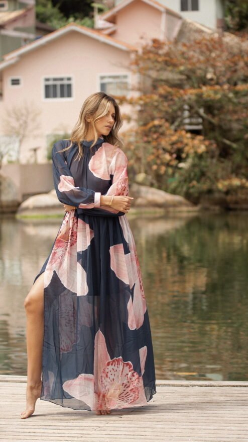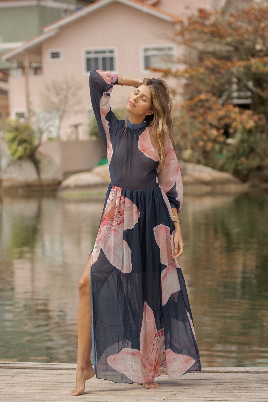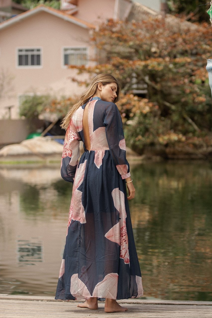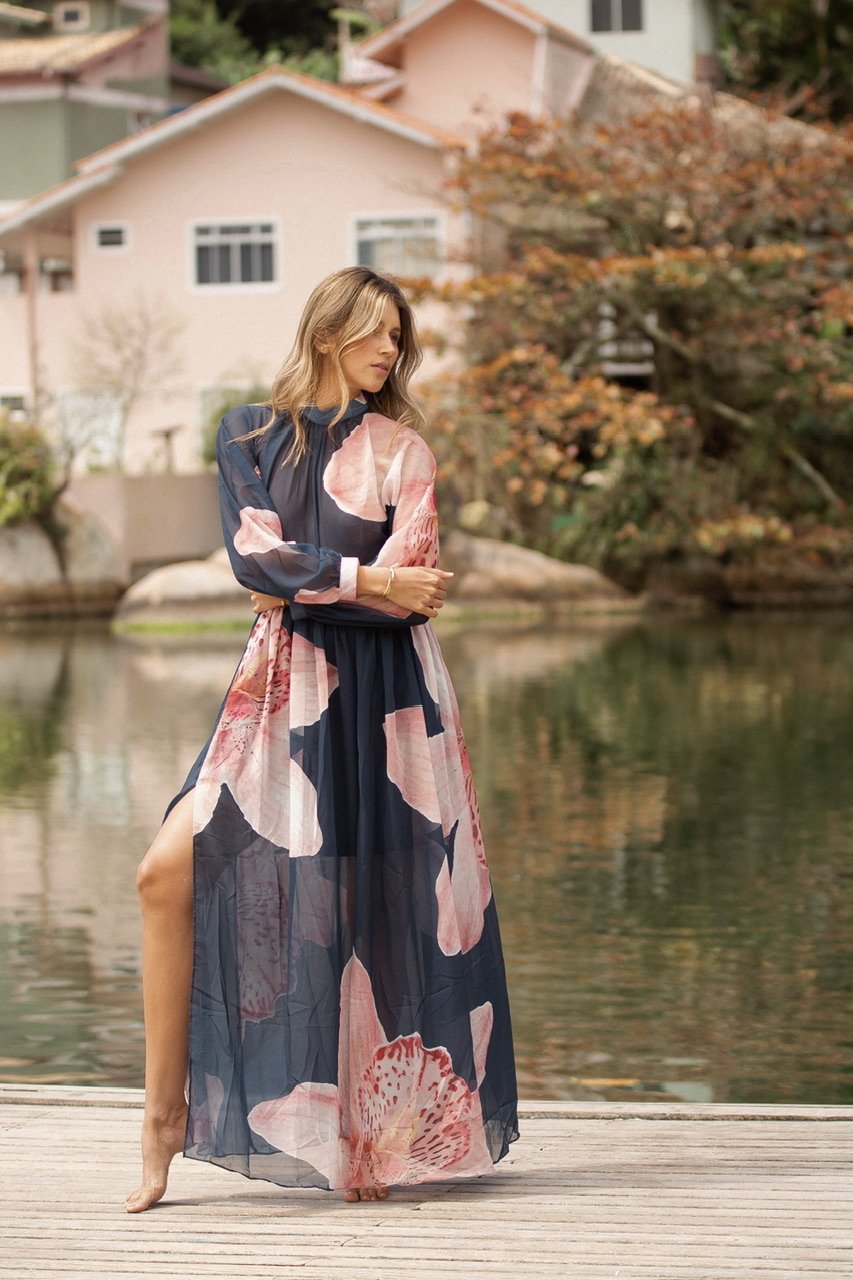 Entre el reflejo del agua y el murmullo suave del viento, nace Orquídea: una pieza que captura la esencia más serena y luminosa de Florianópolis. Es ese vestido que te acompaña cuando caminas sin prisa, cuando te descubres más liviana, más tú. Su movimiento etéreo invita a disfrutar la belleza sencilla del día, a respirar profundo, a sentir cómo la feminidad latina se expresa con libertad y sofisticación natural.