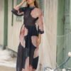 La abertura lateral en la falda aporta sensualidad equilibrada, mientras que la espalda abierta, uno de sus detalles más especiales, revela la piel con un toque sutil y femenino. Ligero, fresco y de textura suave, este vestido abraza la silueta sin ajustarse, ofreciendo comodidad total y un look impecablemente sofisticado.