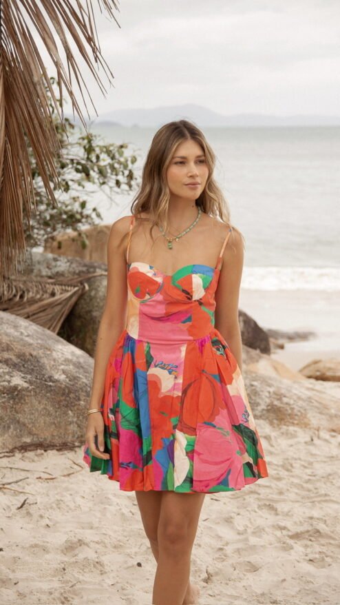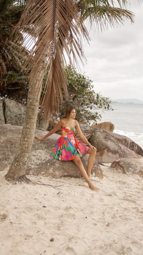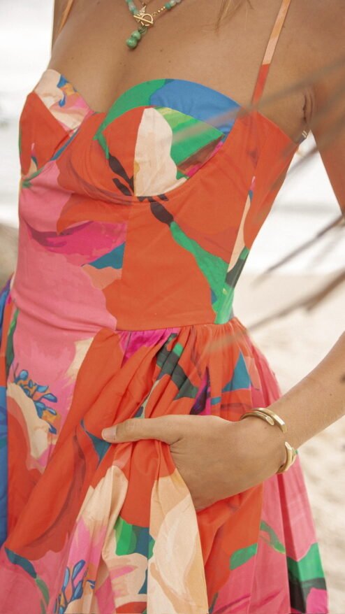 Radiante, alegre y lleno de vida, así es Papaya, una explosión de color que celebra la libertad de los días soleados y la feminidad sin esfuerzo. Inspirado en la energía tropical de Florianópolis, este vestido captura la esencia del verano latino: risas frente al mar, piel dorada y momentos que se sienten eternos. Es esa pieza que te acompaña entre arenas doradas y tardes infinitas, donde todo parece fluir con naturalidad.
