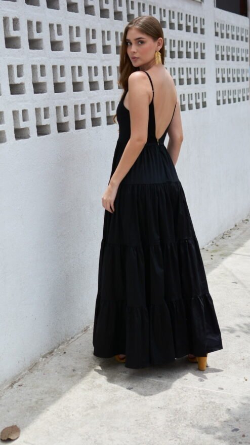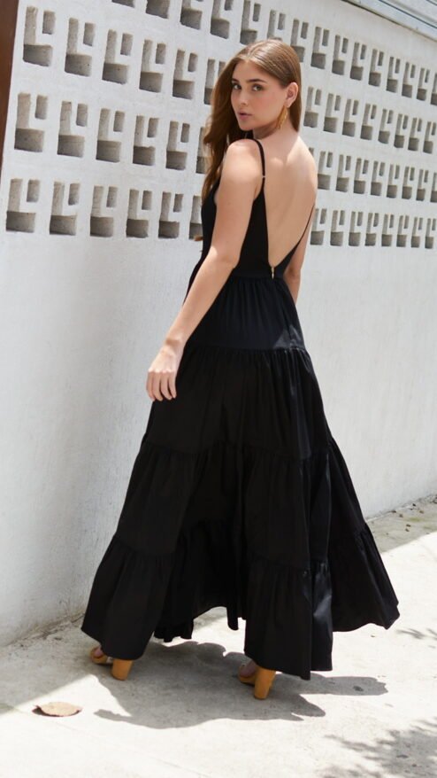¡Destaca y luce deslumbrante con nuestro Maxi vestido Silvia! Esta elegante prenda está confeccionada en algodón con un acabado satinado, tiene escote en V profundo cerrado con mallatex y tirantes de fácil ajuste. Es absolutamente imprescindible para tu guardarropa y es perfecto para usar en cualquier ocasión súper especial que se presente. ¡Llévalo con un look de maquillaje glamuroso, joyas, sandalias de tacón y un mini bolso de mano para completar el look!