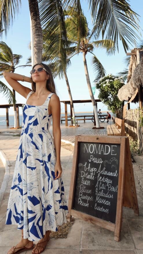 Inspirado en las vibras frescas del Caribe, nuestro vestido Tropical combina la elegancia de un estampado floral azul con un corte relajado y fluido. La tela ligera acaricia la piel, perfecta para sentir la brisa del mar en una escapada costera o para disfrutar de un paseo por la ciudad en un día soleado. Con su escote cuadrado y tirantes anchos, este vestido evoca libertad y sofisticación.
